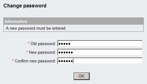 The same password will not be accepted again and it must comply to the password policy of EWA: it must be at least 4 characters in length and may not be the same as the previous password.
