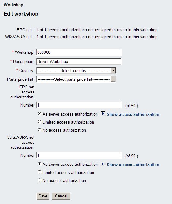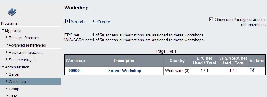 By default when you install EWA the system will run in a simple administration mode which restricts you to exactly one workshop. This workshop automatically mirrors all the access rights from the Daimler server access authorizations. You can change some attributes (like Workshop No., Description,...), but that's it basically. This workshop of course can contain an infinite number of groups which allow you to distribute fine grained access rights to users in these groups.