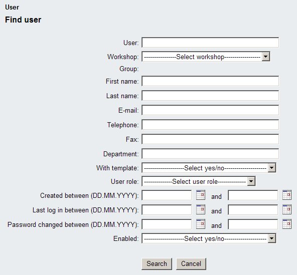 | User | x | (x) | Restricted for workshop admins to users only within their own workshop | |