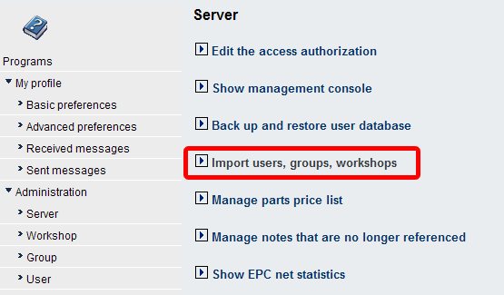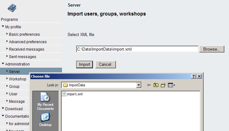 | Server Management -> Import Users, Groups and Workshops | x | Only for server administrators | ||