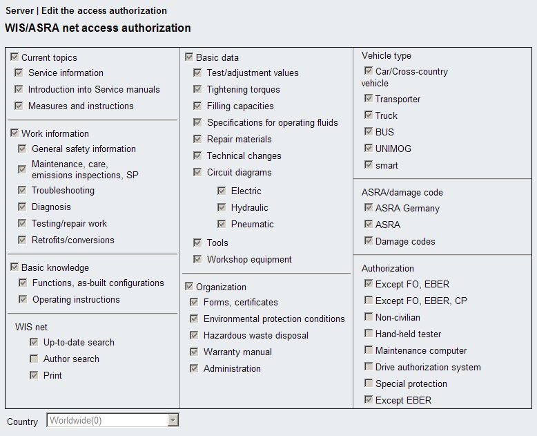In this case you might find it helpful that all the screens show statistic information about the number of access authorizations assigned to users and workshop. This should help you make the best out your Daimler server access authorizations.