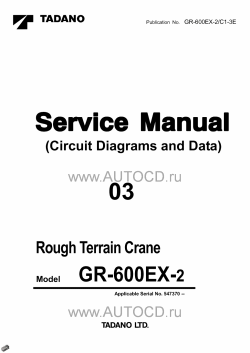 Заводская инструкция по ремонту крана Тадано - Tadano Rough Terrain Crane GR-600EX-2 содержит подробную информацию о сборке и разборке агрегатов, процедур диагностики, электрические схемы, моменты затяжек и др. Информация доступны на Английском и Японских языках. Если модель поставлялась только на локальный рынок Японии инструкции будут на Японском языке, книга с электрическими и гидравлическими схемами будут на английском.
