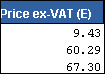 • Price, excl. VAT: Unit price excluding VAT for the part